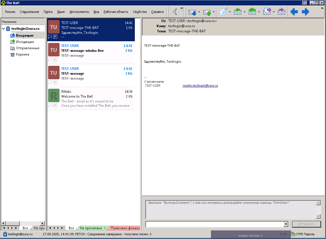 | Сервер входящей почты (POP3, IMAP сервер) | mail.samtel.ru |