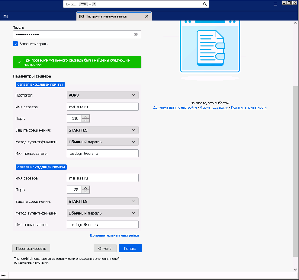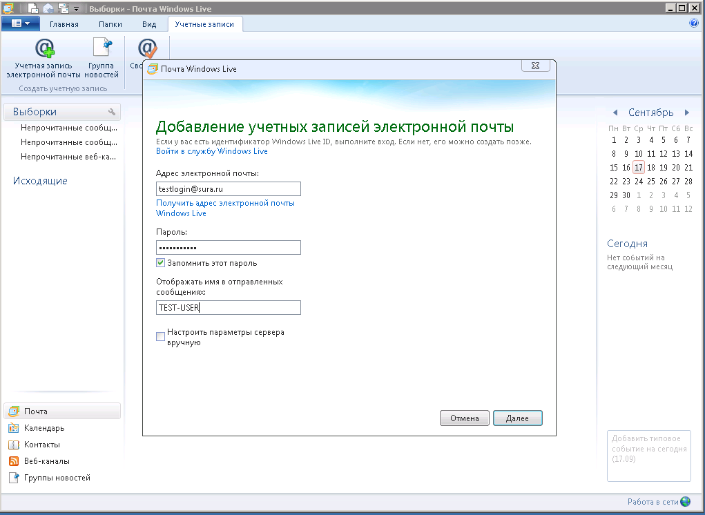 | Пароль | Пароль, который вы используете для входа в почтовый ящик |
